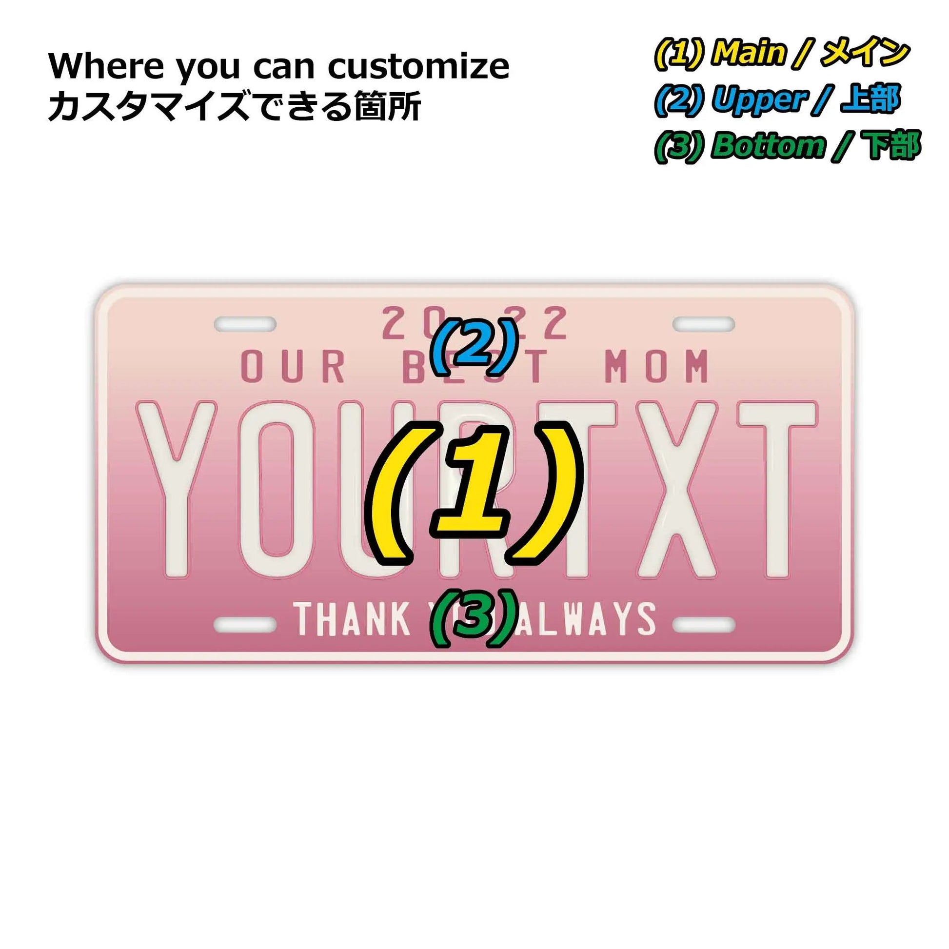 カスタムライセンスプレート型看板 【大・US車用】母の日・グラデーション/オリジナルアメリカエンボスナンバープレート おしゃれ表札看板