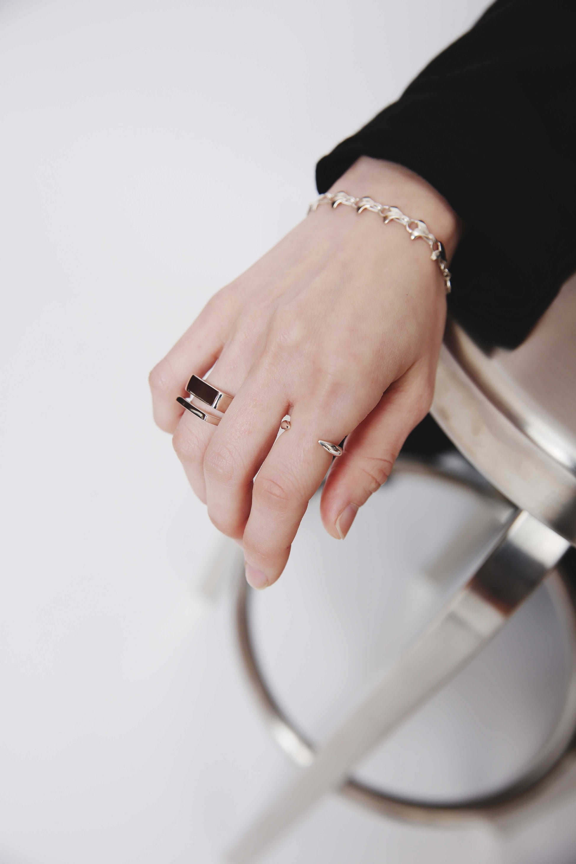 重みのあるリングが手元に光り、ふとした所作にも目を奪われてしまう。
