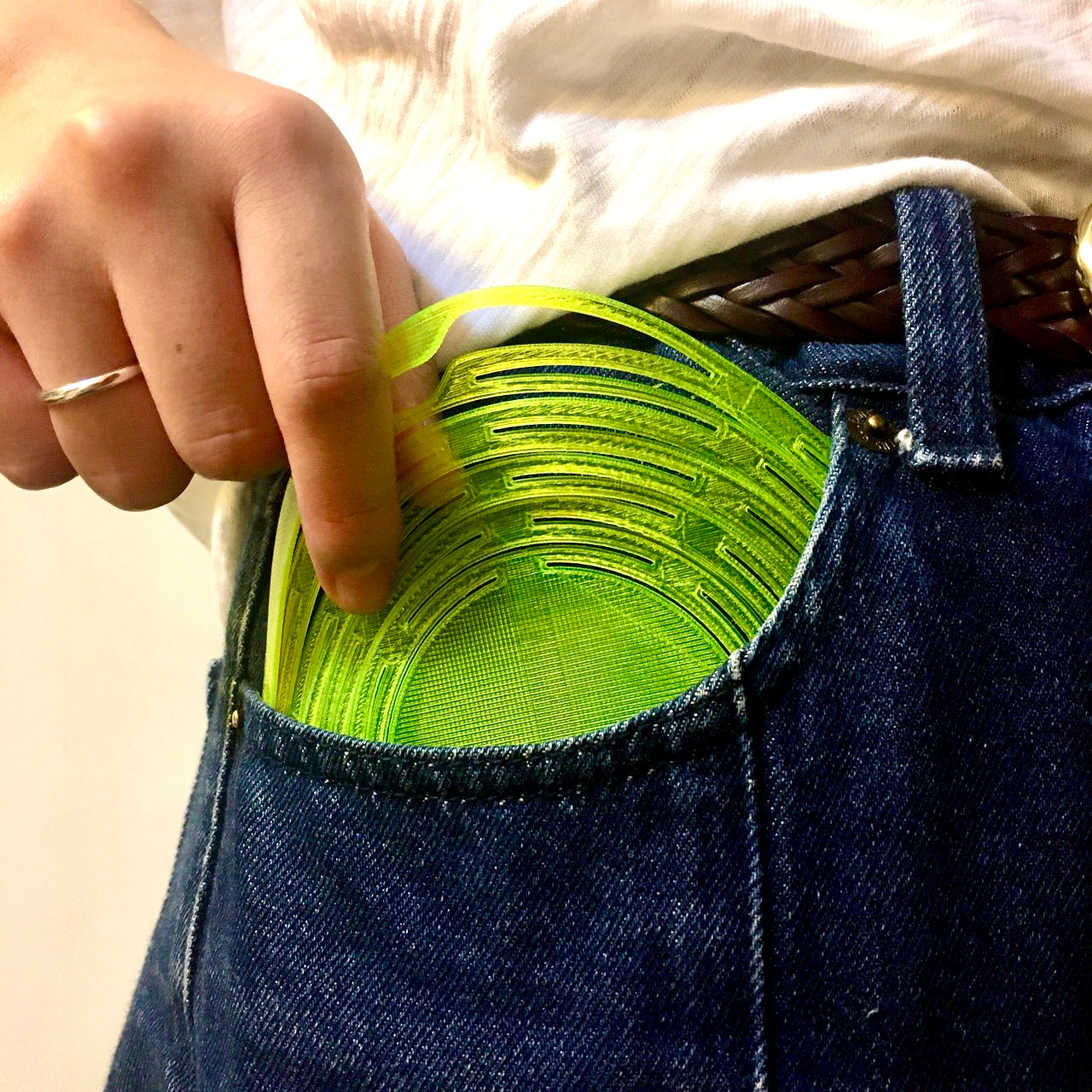 ◎使わない際は1mmの厚さに収まり、ポケットに収納することが可能なドリンクホルダーです。
