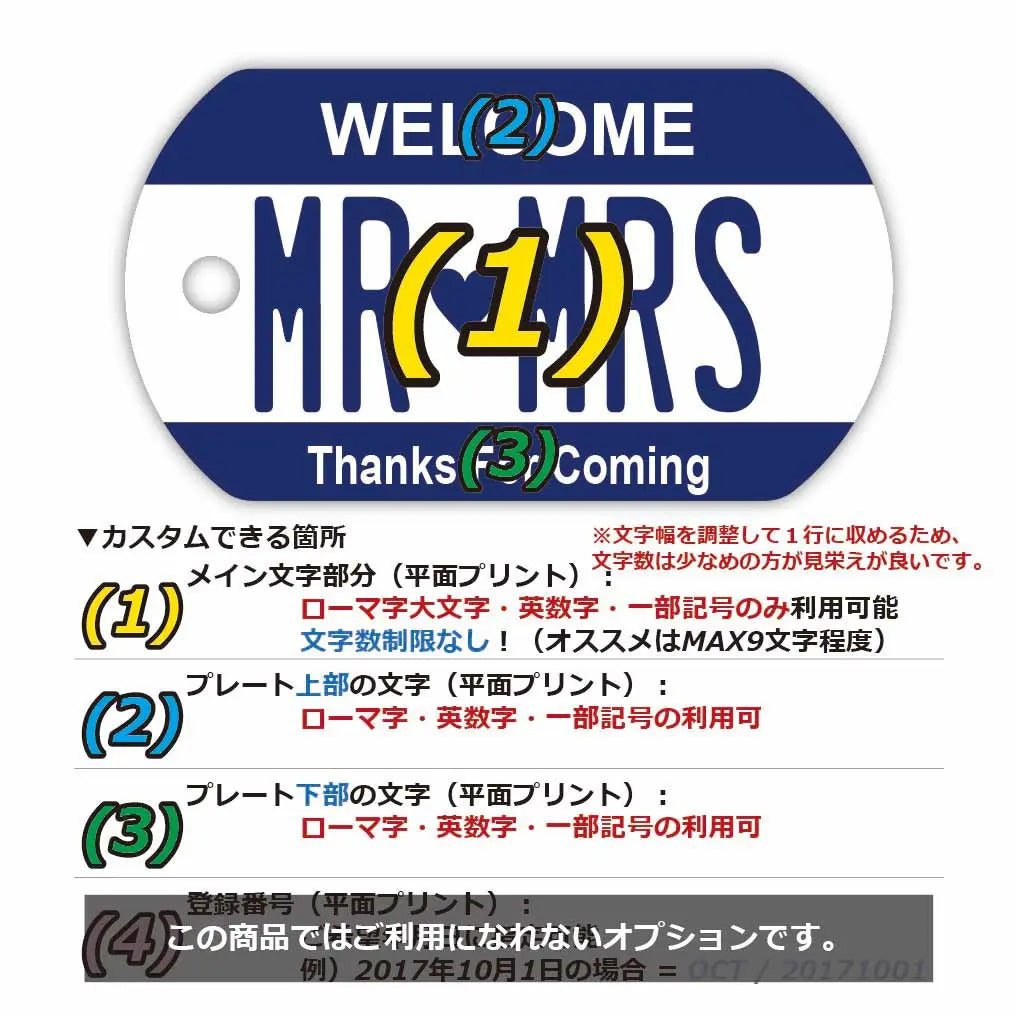 【犬用迷子札・ドッグタグ】カラー・ネイビー/オリジナルアメリカナンバープレート型 名入れキーホルダー