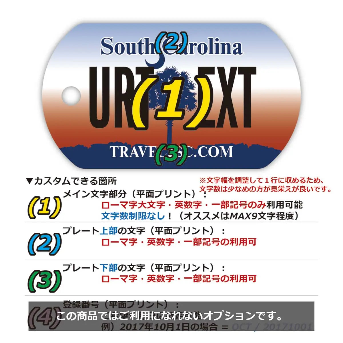 【犬用迷子札・ドッグタグ】サウスカロライナ/オリジナルアメリカナンバープレート型 名入れキーホルダー