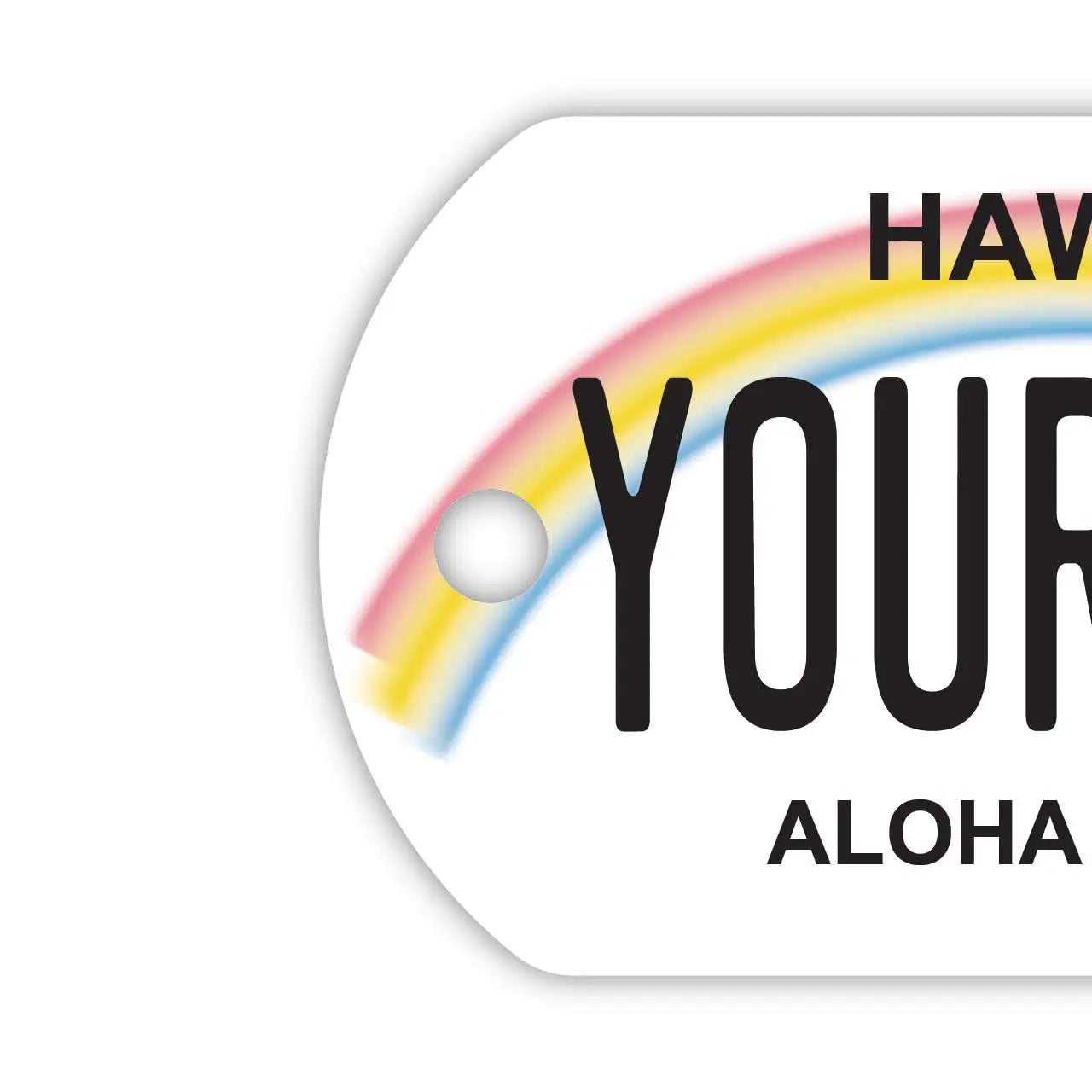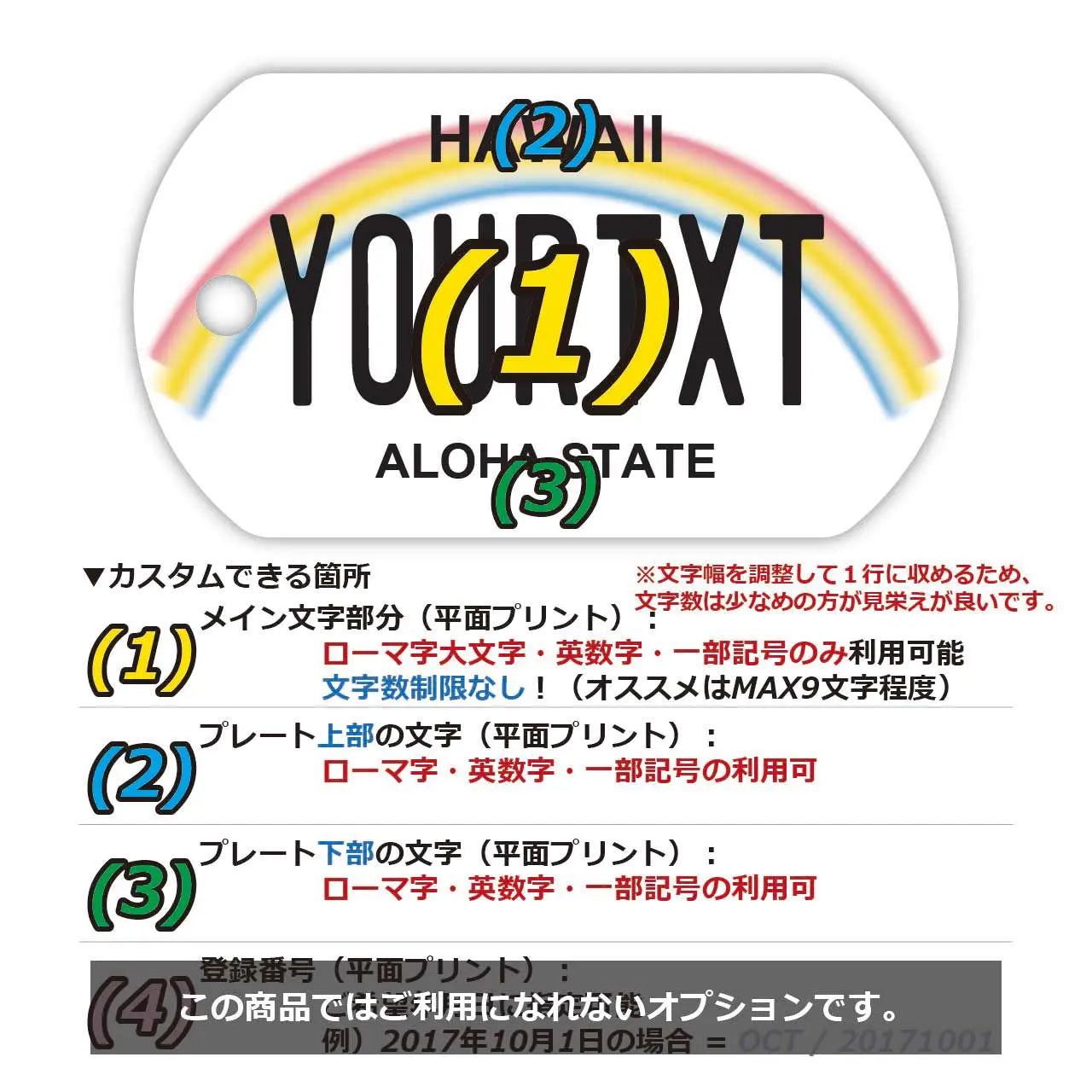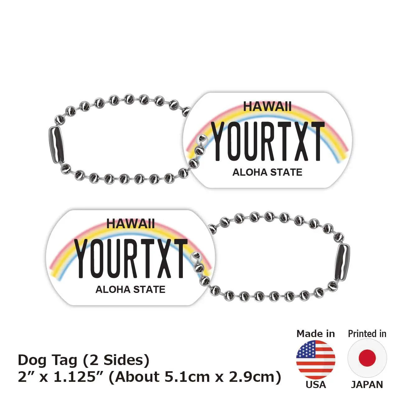 【犬用迷子札・ドッグタグ】ハワイ・レインボー/オリジナルアメリカナンバープレート型 名入れキーホルダー