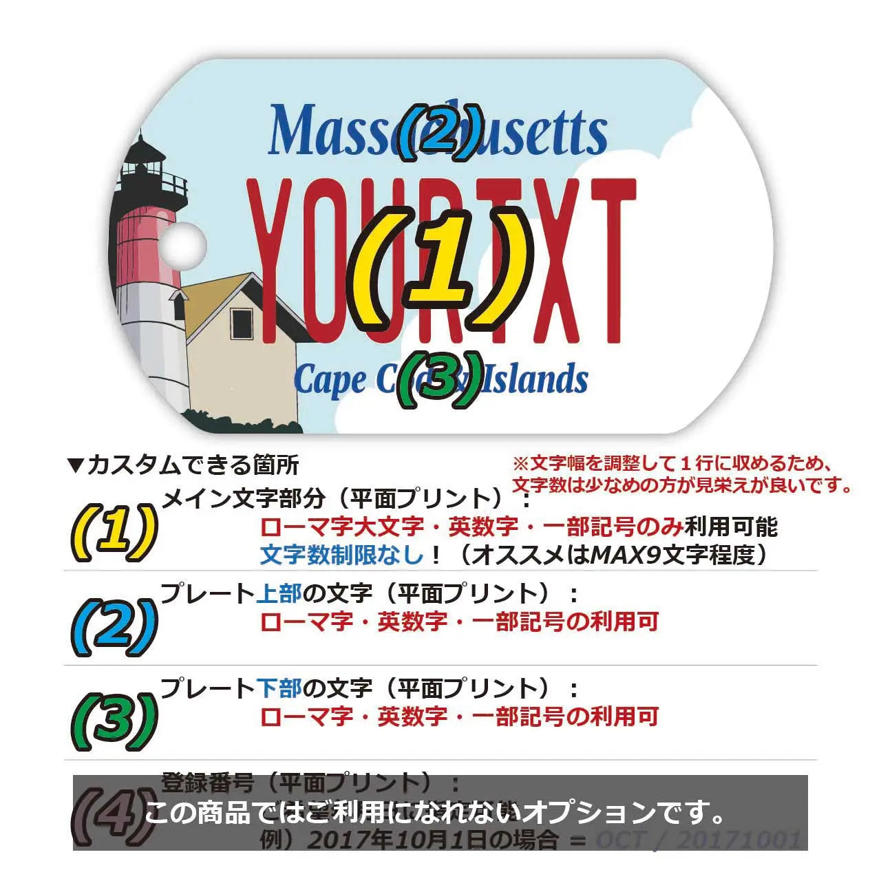 【犬用迷子札・ドッグタグ】マサチューセッツ・ケープコッド/オリジナルアメリカナンバープレート型 名入れキーホルダー
