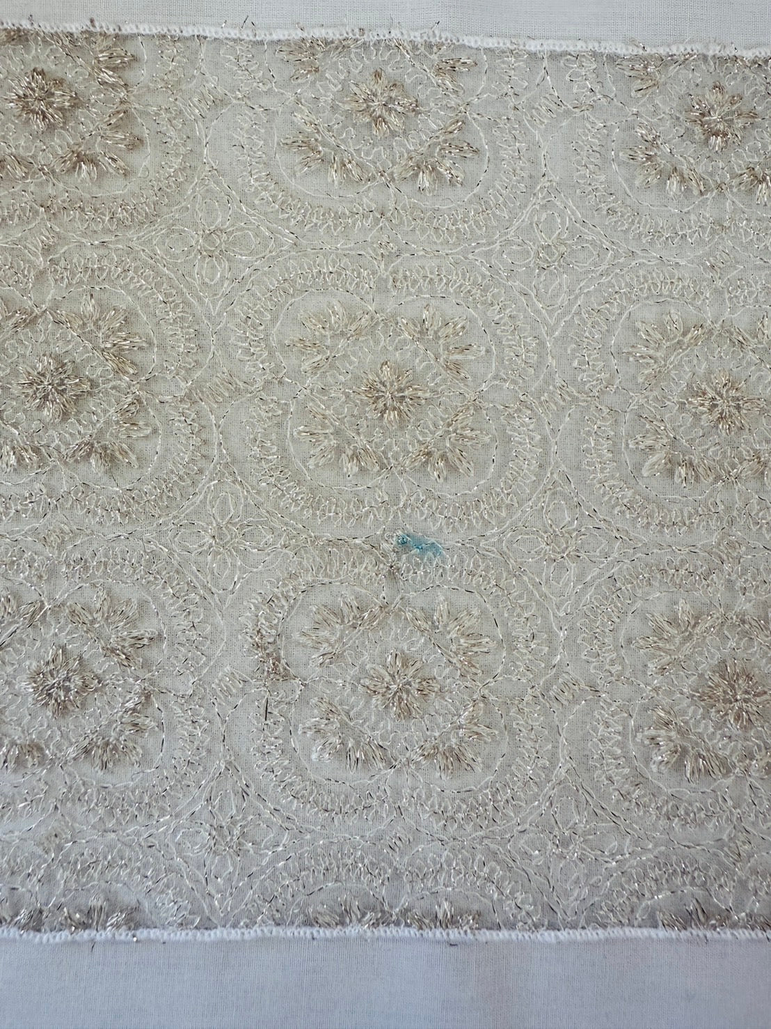 ごく薄くふわりと軽いシフォンに、白とごく薄いシャンパンゴールドの糸で花を刺繍した美しい半衿。