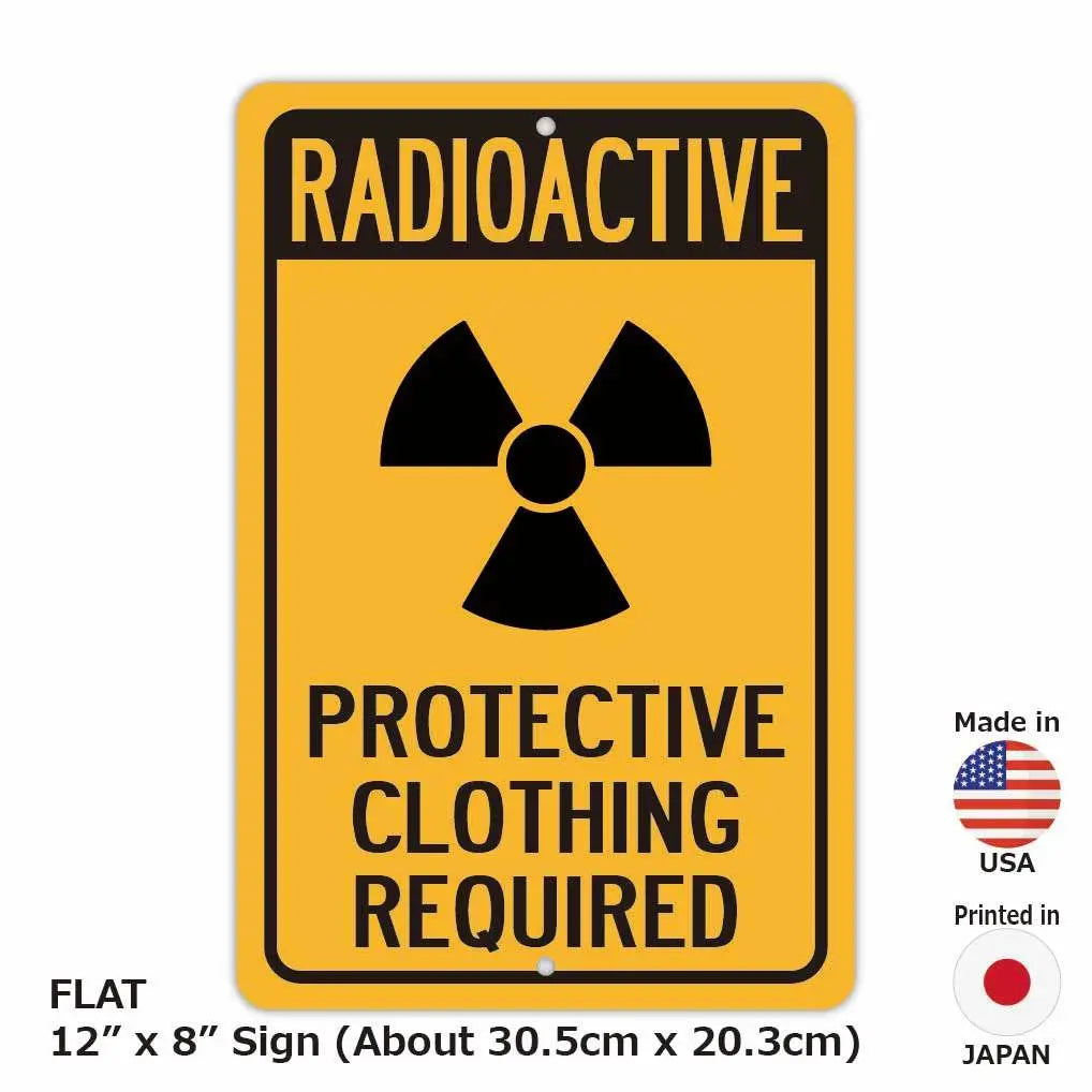【長方形看板】放射線注意 / 防護服必須/アメリカ製オリジナル看板(約20x30cm)