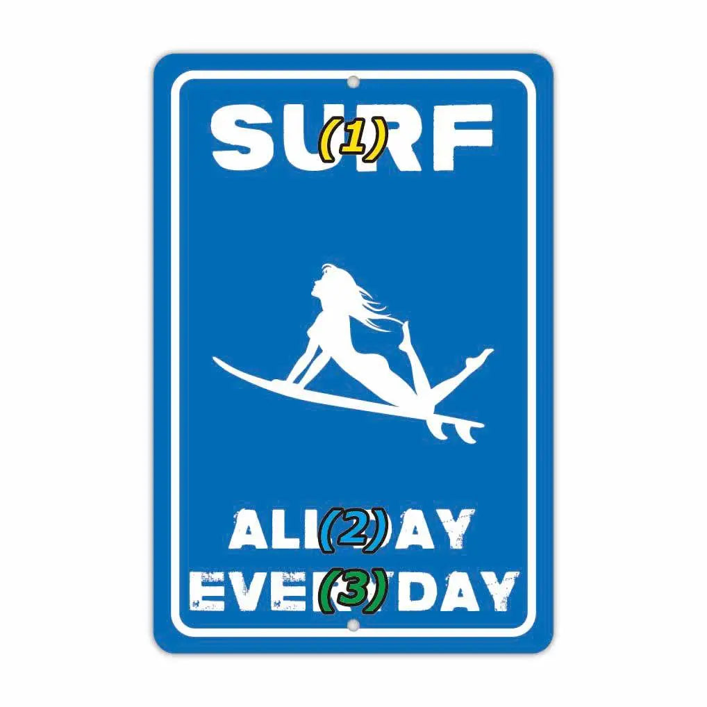 【長方形看板】毎日、1日中ずっとサーフィン/アメリカ製オリジナル看板(約20x30cm)