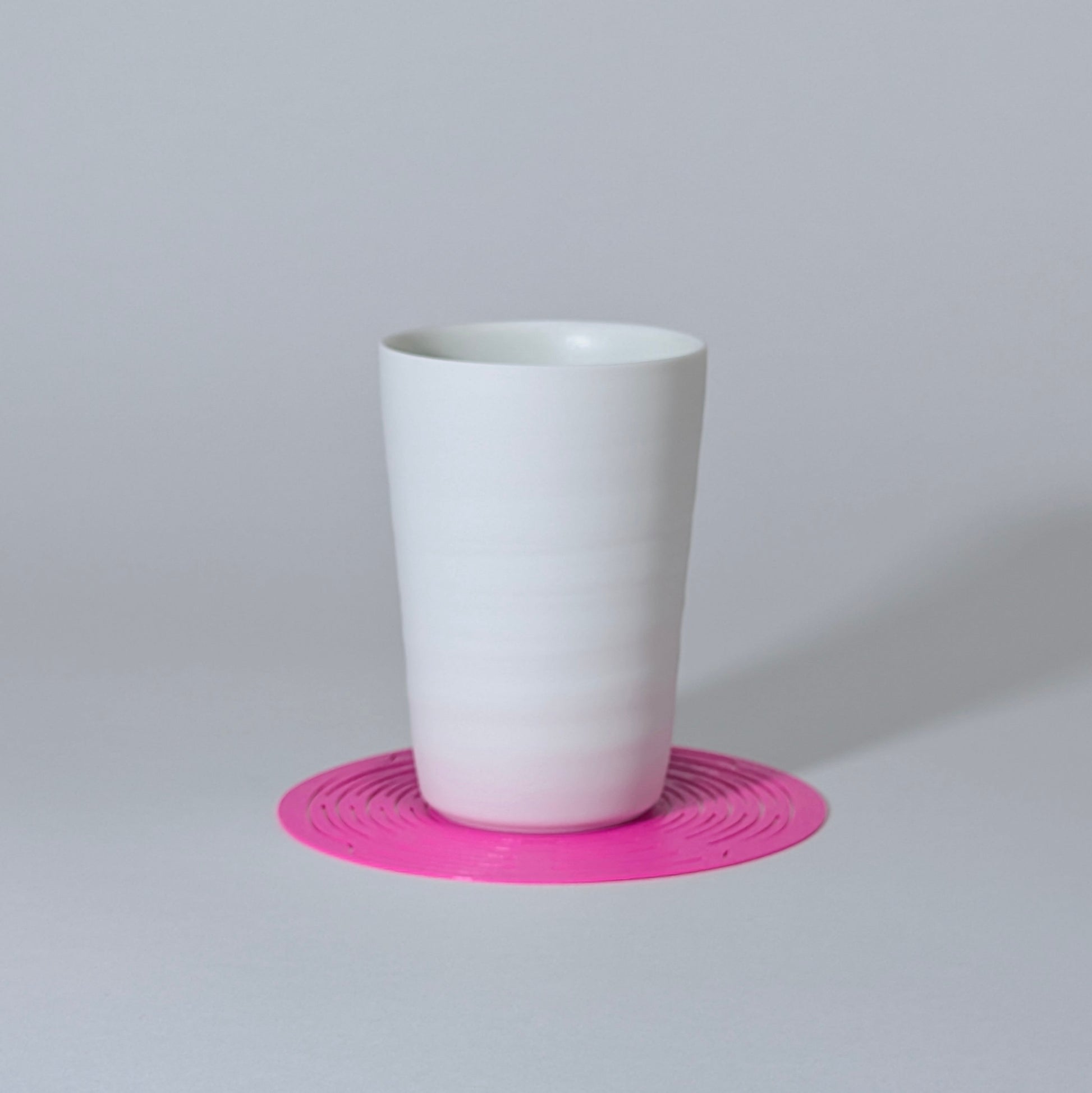 ◎机に置いている際は自然にコースター状に戻り、コースターとしてもお役に立ちます。
