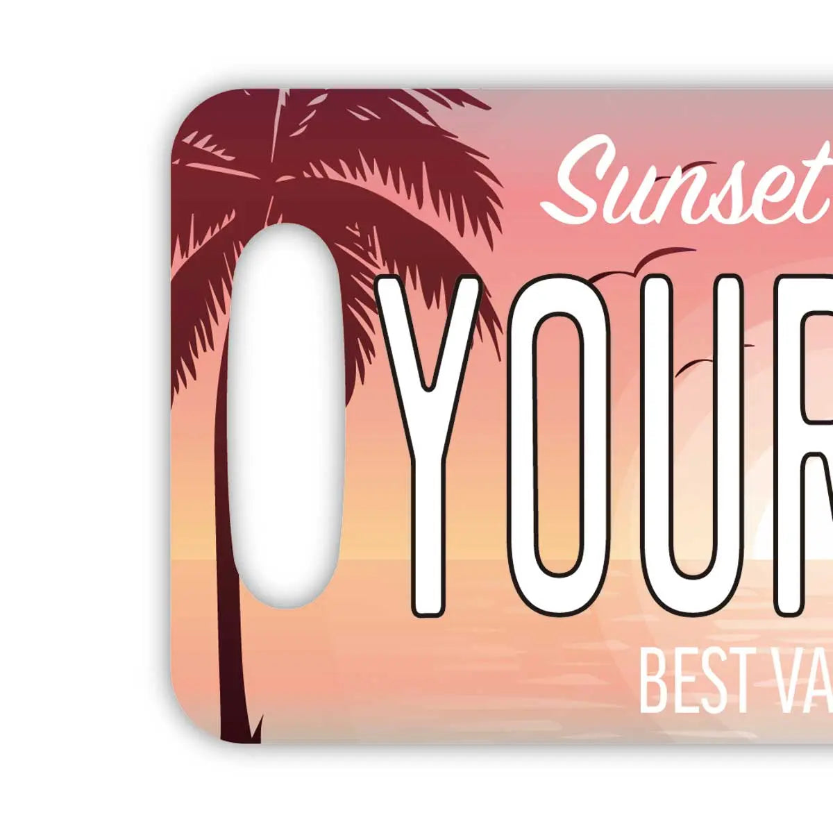 【ラゲッジタグ】ヤシの木・オーシャンサンセット/オリジナルアメリカナンバープレート型・おしゃれ ・紛失防止タグ